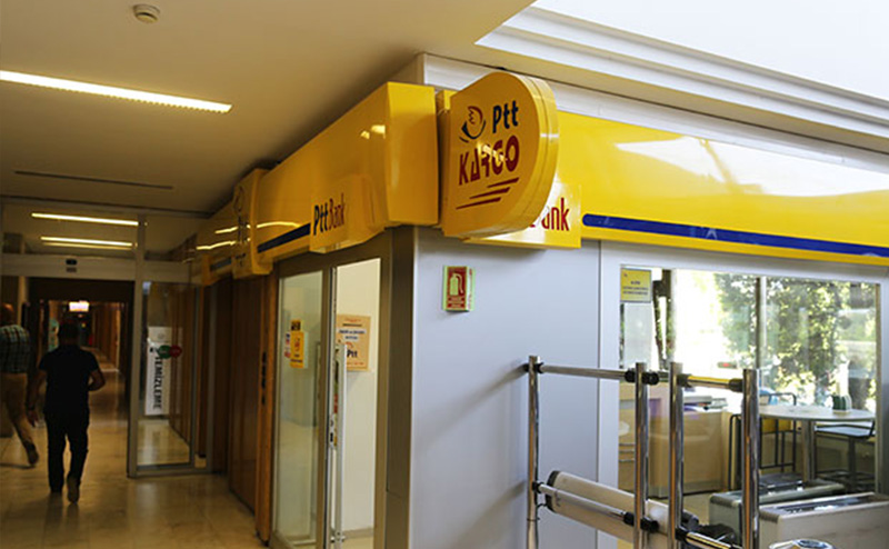 Hafta içi her gün 09.00-17.00 arası hizmet veren PTT cep şubesi ile fatura ödemeleri, şahsi gönderiler vb. birçok işleminizi kampüs dışına çıkmanıza gerek kalmadan tamamlayabilirsiniz.
